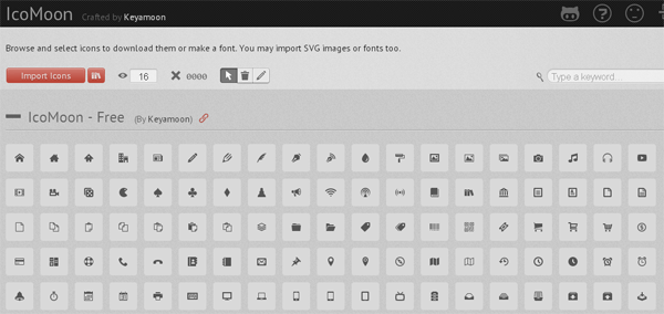 IcoMoon is an online app that you can use anytime you want. To date, there are over 3800 free vector icons available in the website. I believe it has the largest collection of icon fonts. Whatever size you use, the icons will remain crisp since it is in vector format. It has CSS Sprites, fundamental Glyph editing, and many others. You can go for the premium membership to access more beautiful icons.