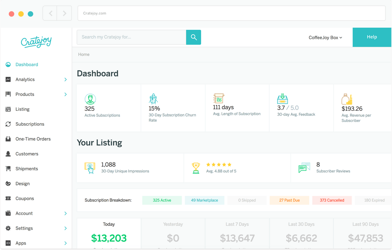 From analytics software, to website design tools, to keeping tabs on shipment, Cratejoy is the perfect place for any subscription box owner to get their business known and get their goodies out to all of their lovely customers!