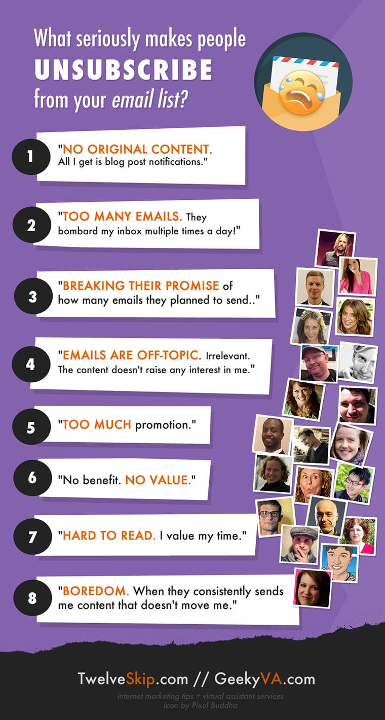 To answer your question: What is the biggest reason that makes you unsubscribe from an email list?