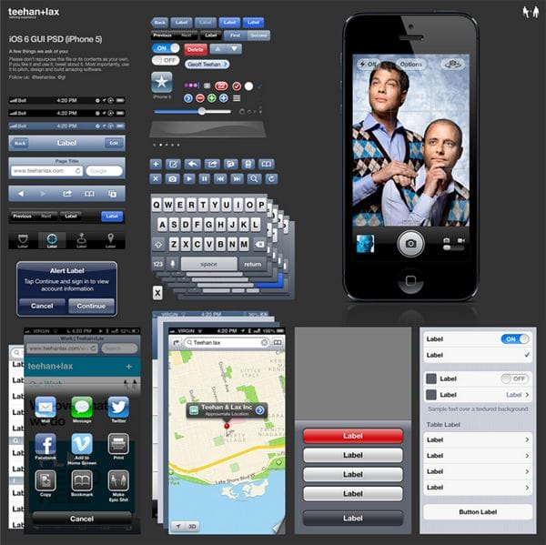 It’s an iPhone Starter Kit of Smashing Magazine. The set includes button elements and different interface options for iPhone. It’s designed for mobile developer and front-end designers. It doesn’t have restrictions so you can freely use it for your projects, whether they’re private or commercial.