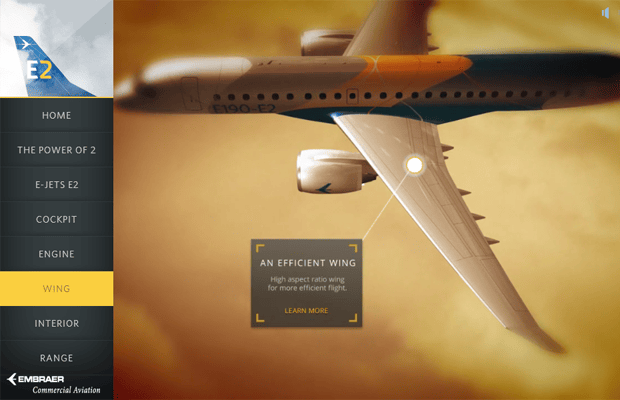 This is a neat full-screen video website of an airplane/airline company that has superb HTML5 graphic effects. Even the menus and visual effects are stunning.
