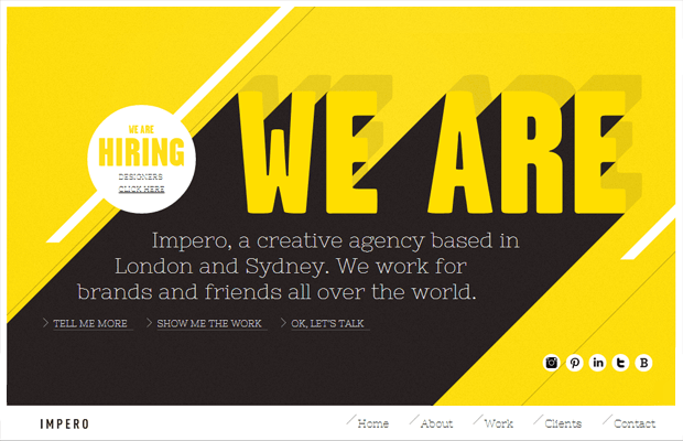 This portfolio of a digital designer and developer is also a good starter for a yellow website design. It has a more yellow-orange background than bright yellow, and has an interactive HTML5 appearance.